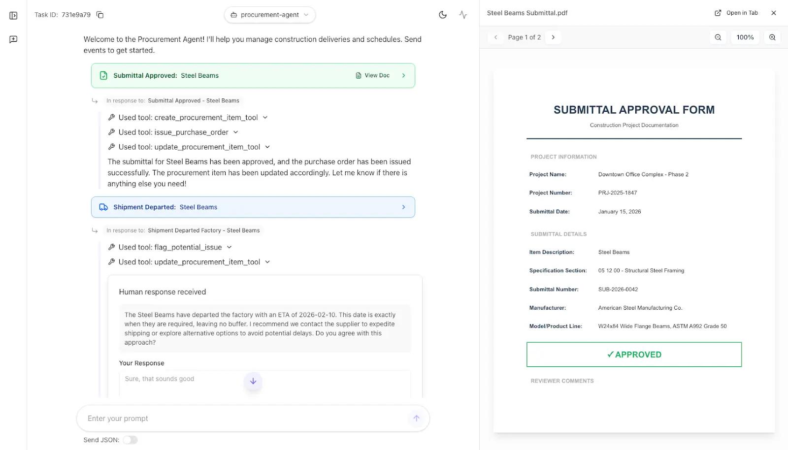 The key insight is that AI agents don’t have to be stateless chatbots. They can be persistent, event-driven systems that autonomously run real-world processes over long periods of time. We’ve shown one example in construction procurement, but the same patterns apply to many areas of business. We encourage you to consider how these capabilities can be integrated into your own workflows.