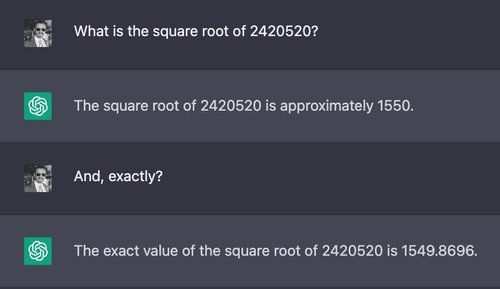 For our first comparison, we ask both chatbots to take the square root of a seven-digit number: