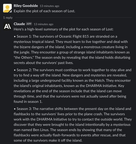 It appears that, like most human viewers of the show, both ChatGPT’s and Claude’s memory of Lost is hazy at best.