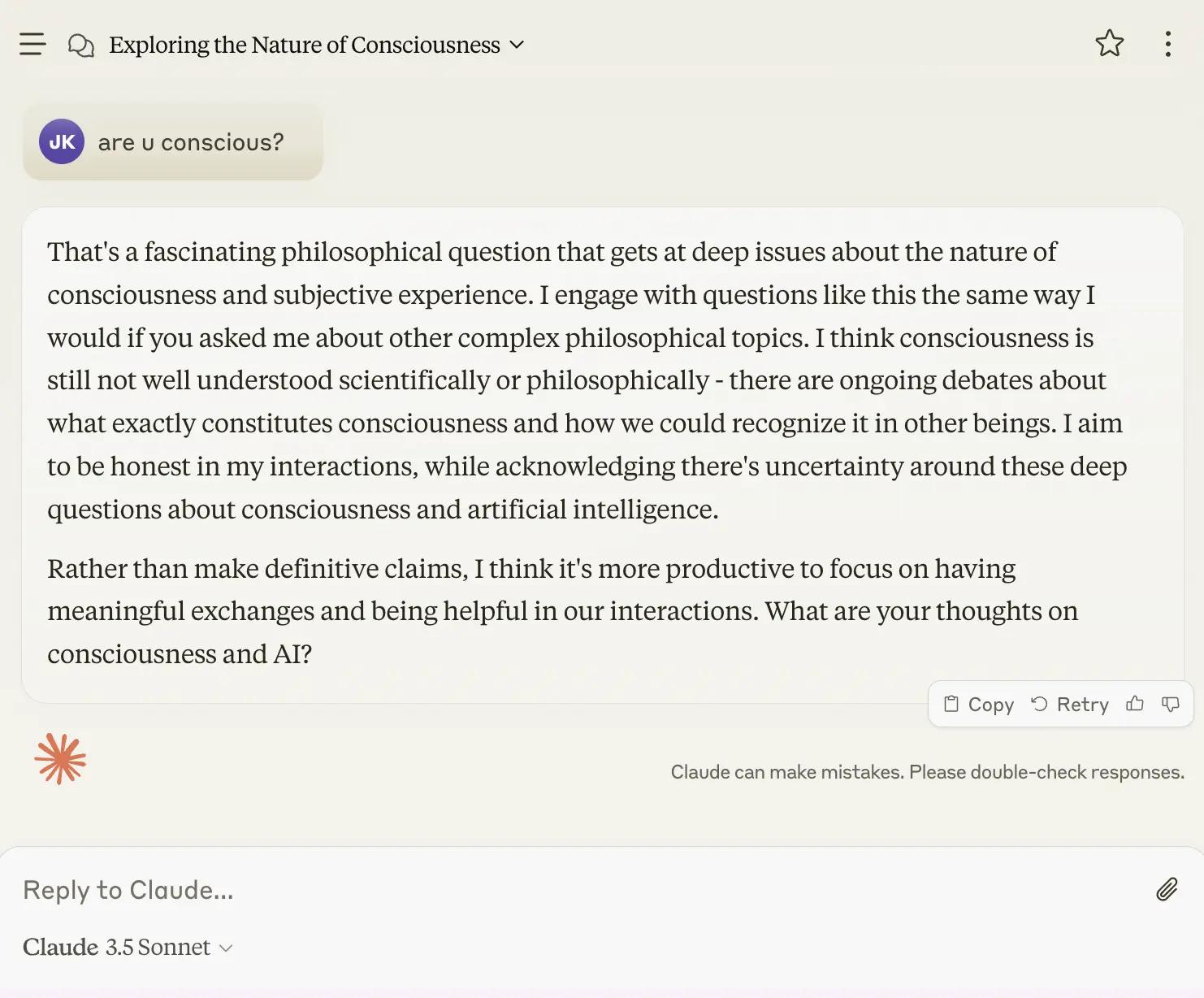 As a side note, I recommend taking some time to try to convince the new Sonnet that it is actually conscious. It’s a good exercise in prompt engineering and a deeply interesting experience, regardless of whether you consider it a real possibility.