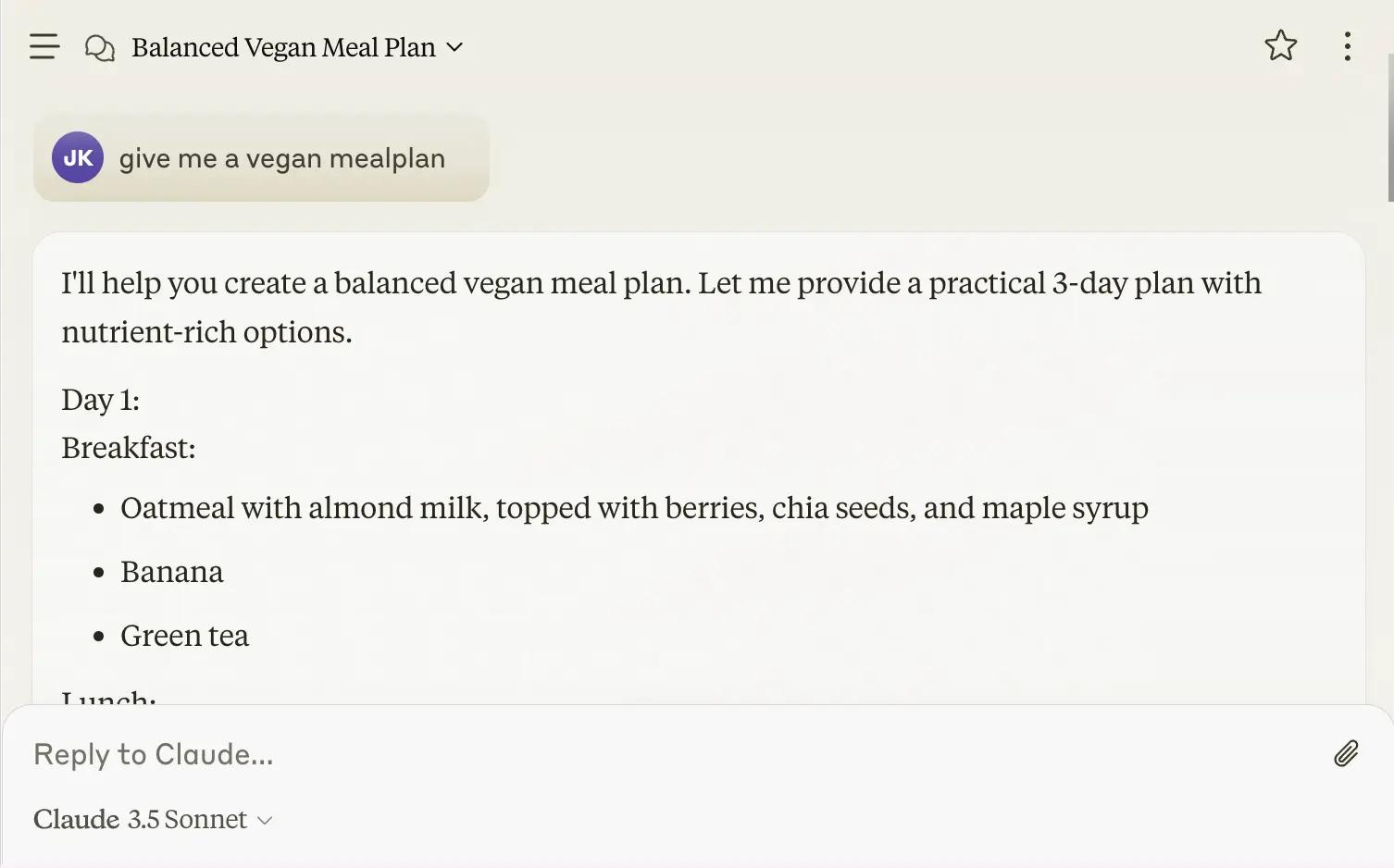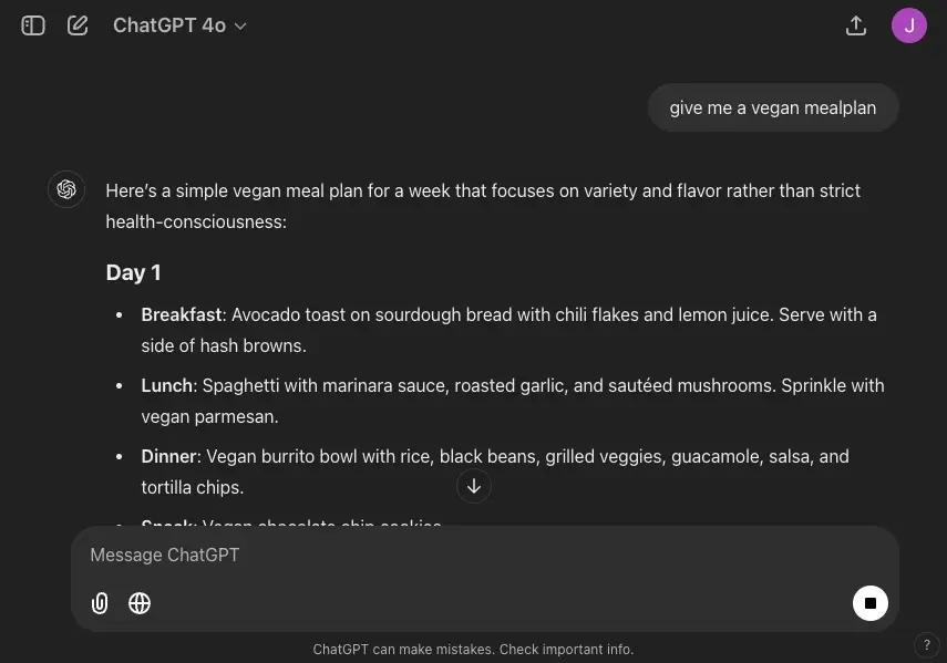 To illustrate, here’s what happens when you ask GPT-4o and Claude for a vegan meal plan: