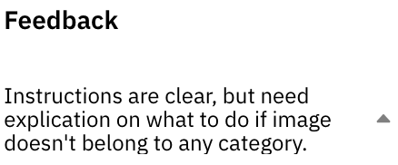 Taskers also give feedback so we can update our instructions based on. For example, some taskers were confused on what to do if they believed an image did not belong to any category. In response, we added another label for “None” and updated the instructions accordingly.