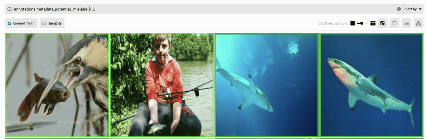 After uploading all this information to Nucleus, we are ready for some analysis. After we run the query annotations.metadata.potential_mislabel = 1