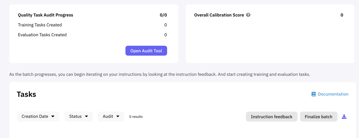 Upon saving these instructions, we send a calibration batch. This represents a sample of our sent data, which we can audit and provide feedback on, before our full data set gets labeled.