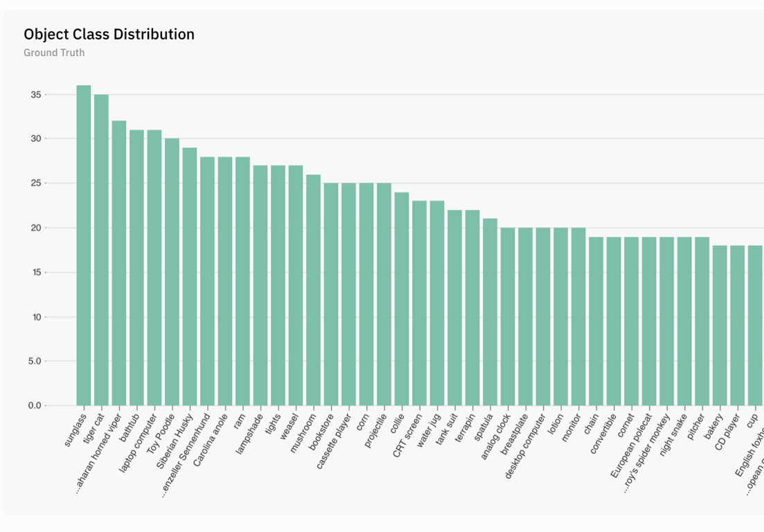 This allows us to get a specific partition of our dataset that we can directly get insights for. For example, this is the class distribution within just our potentially mislabeled slice: