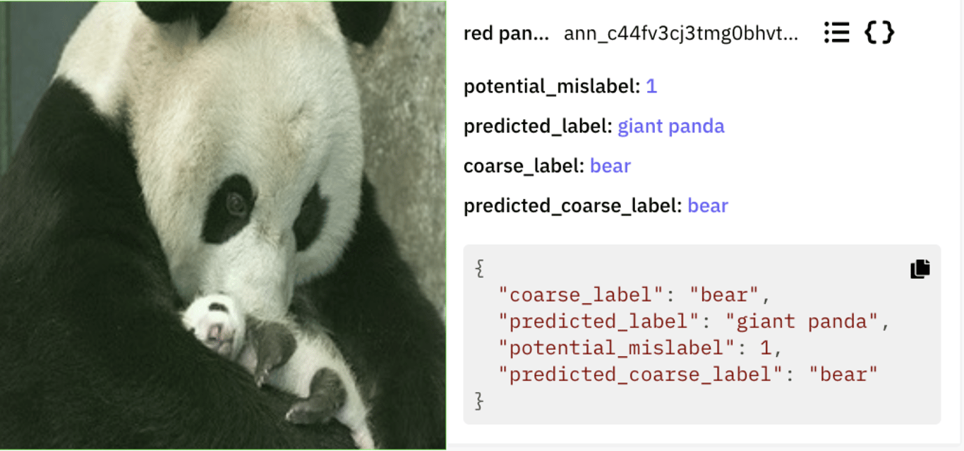 We see that the original ground truth label was red panda, but as we can verify, the actual label should be giant panda!