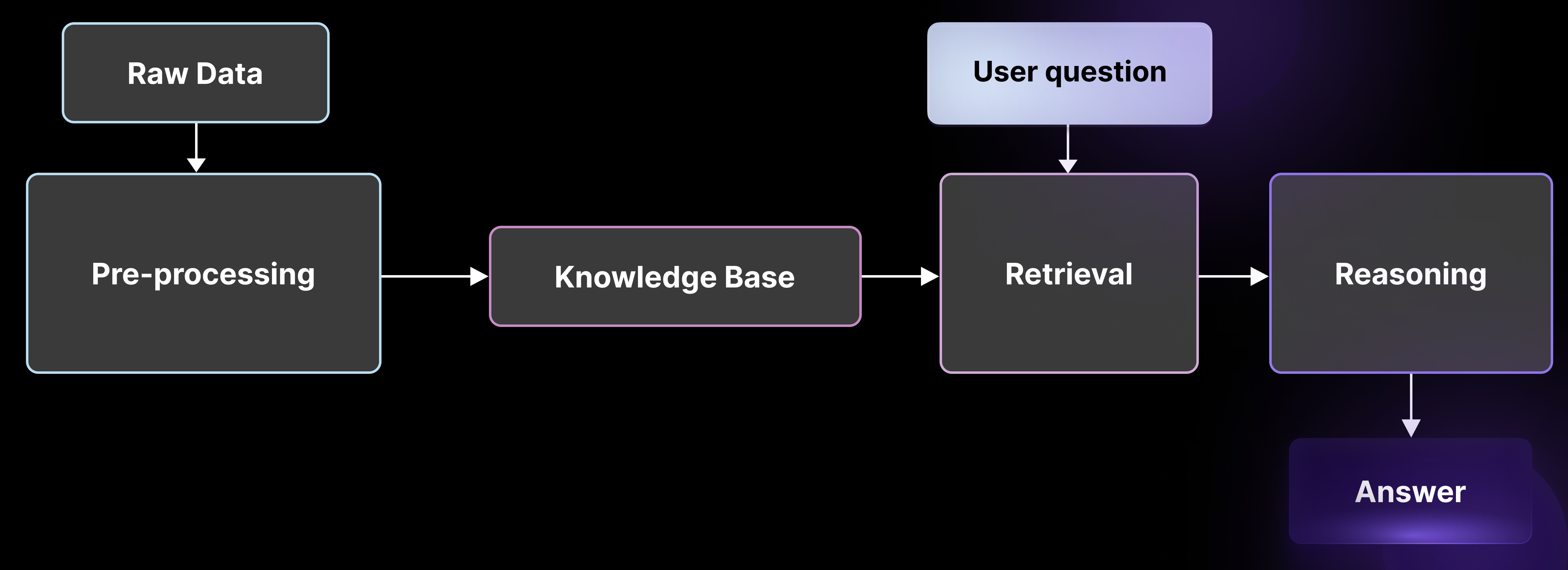 The first step in RAG is to transform the raw data that should be used for retrieval into a format so that it can be effectively searched based on the user prompt. For example, the relevant database might be a collection of 10,000 legal transaction documents. The output of the pre-processing step is often called a "knowledge base." This is a combination of a vector store with searchable embeddings and a set of metadata that is associated with these embeddings.