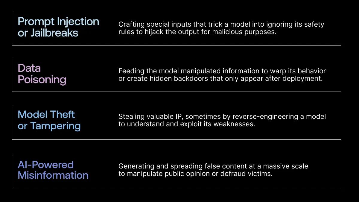 Below, we’ll unpack the main sources of AI risk: Adversaries, Unforced Errors, Misaligned Goals, Dependencies, Societal Impact, and Emergent Behavior.