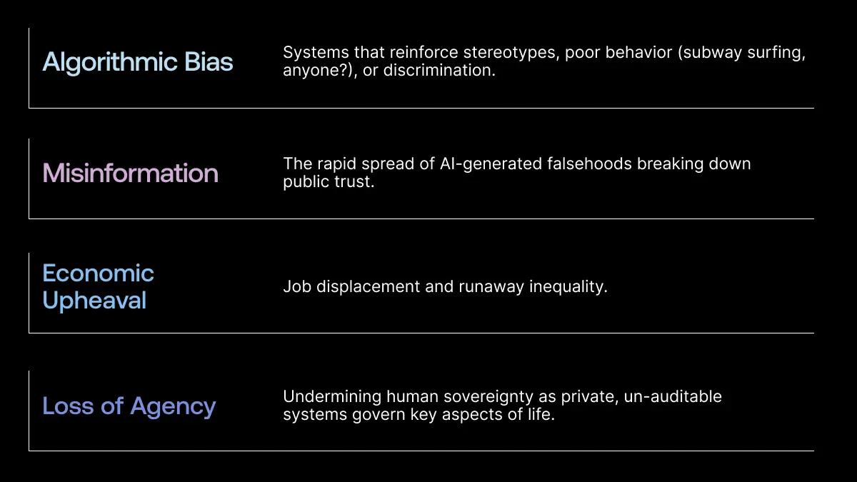 Even when the tech works exactly as intended, it can still cause harm (shocking). The most profound risks are often not technical bugs, but deep sociopolitical challenges. This is the slowest burn, the kind of damage that doesn’t always make headlines until there’s blood on the walls. For customers and citizens, the possibilities are really endless…it might mean being unfairly profiled, misled by false or toxic content, or simply living in a world where trust in digital systems is fundamentally broken.