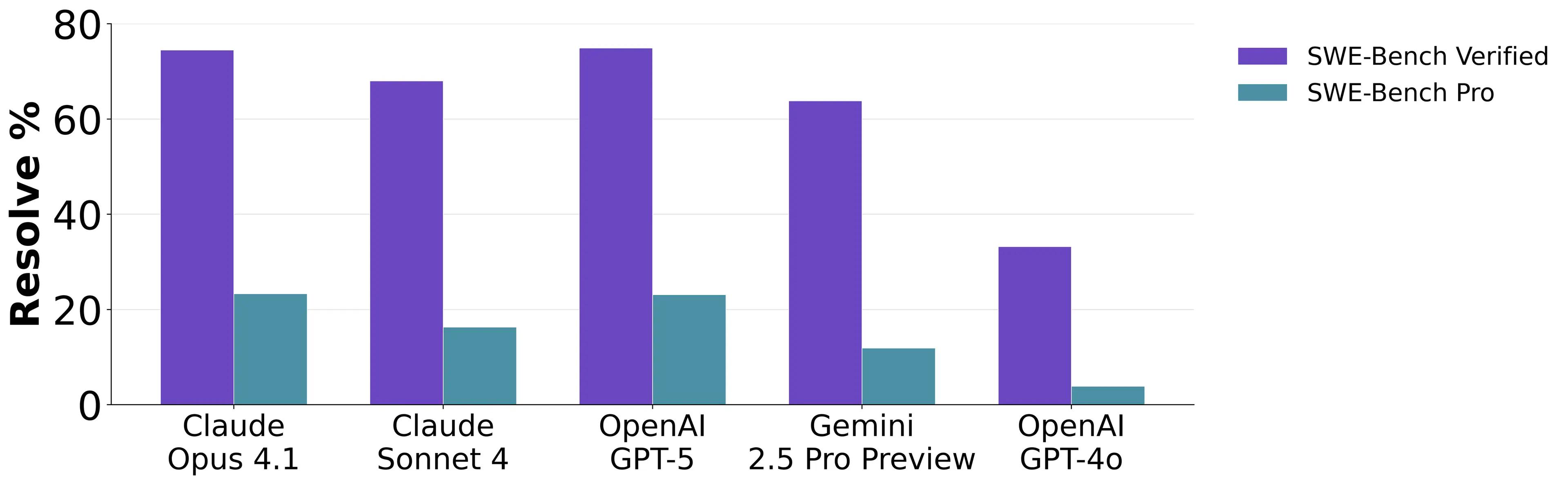 AI agents for software engineering are rapidly advancing, but are benchmarks keeping up? With frontier models scoring so highly on SWE-Bench Verified, we wanted to raise the bar and develop a more realistic, contamination-resistant, human-augmented benchmark. SWE-Bench Pro picks up where SWE-Bench Verified leaves off, with more diverse tasks, increased difficulty, and code that models have not yet seen. On SWE-Bench Pro, the same four frontier models lead the pack, but at considerably lower scores.