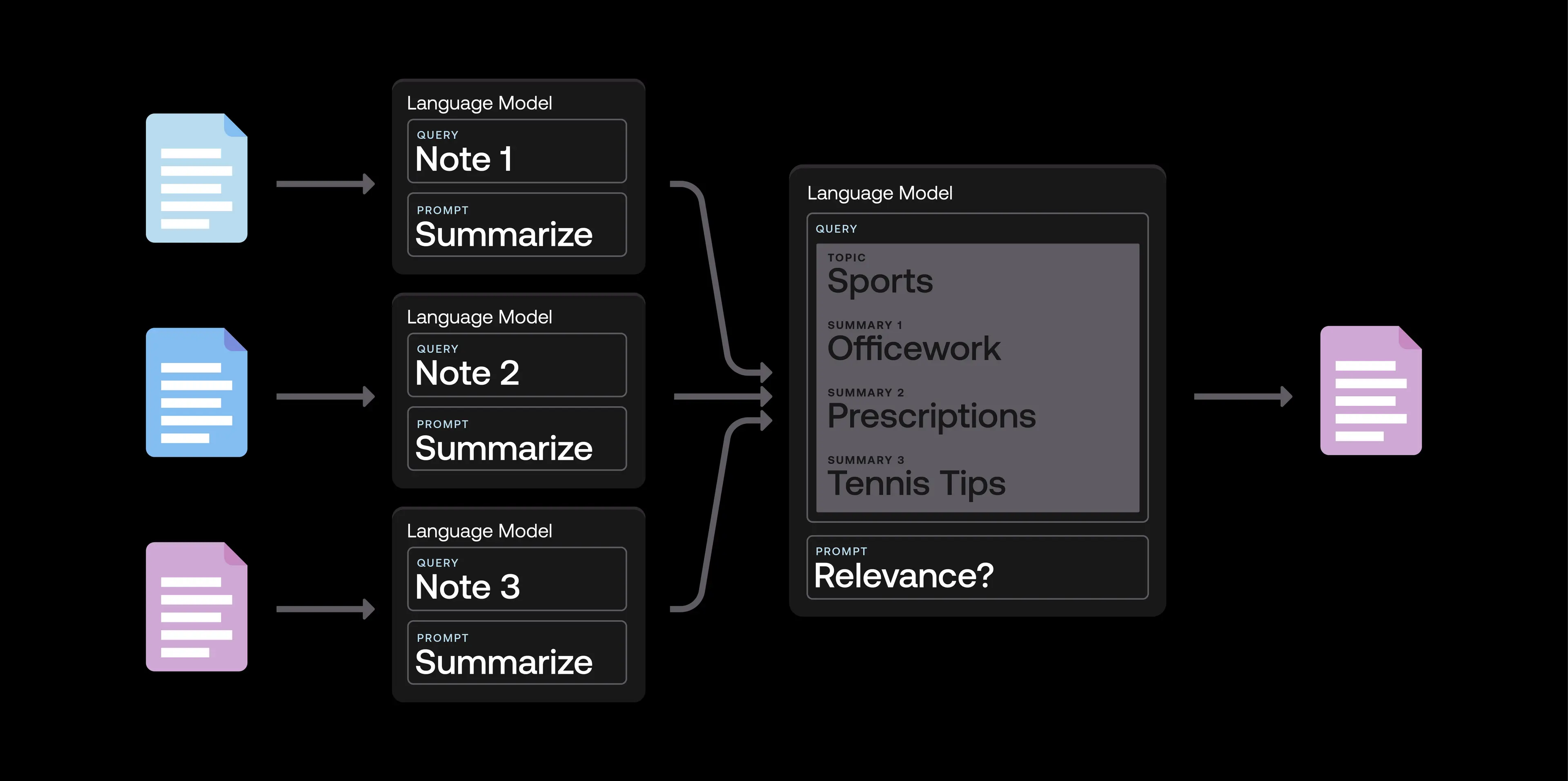 Every prompt a user feeds to a large foundation model instantiates a new model, one more limited in scope: it enters into a different conditional probability distribution, or in other words, a different mood. A language model’s mood gives birth to a new piece of composable modular software that takes in a text token stream and leaves another as output. The elegant power of UNIX-style software comes from the simple but incredibly powerful primitive known as the pipe. It transfers the output of one program to become the input or modifier for another. The output of one prompted query, which asks for a summary of a note, can easily be aggregated and sent to another prompted model that asks to order the summaries by relevance for a given search topic.