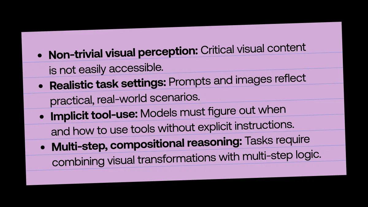 Unlike previous tests that simply included images, VTB presents models with imperfect, realistic scenarios where key information is often hidden, rotated, or poorly framed. To succeed, a model can't just passively describe what it sees; it must actively use tools to transform the image into a more useful format.