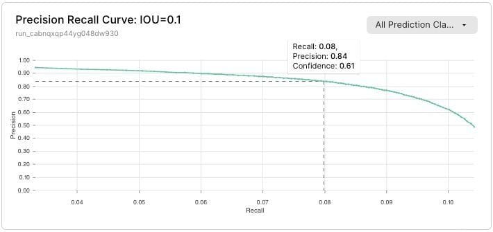 Precision recall curves provide a more nuanced understanding of model performance than any single metric. Precision and recall are a tradeoff; the exact desired values depend on your model and its application.